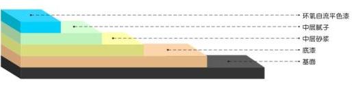 5.面 涂:用鏝刀將環(huán)氧樹脂自流平面料鏝涂于中涂之上(參考用量0.8-1.5 kg/㎡)。